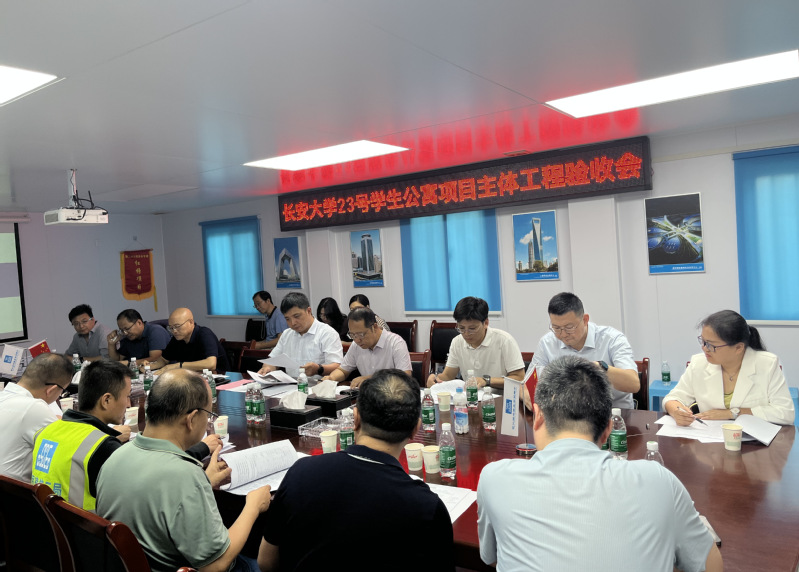 验收会上,基建处、施工单位、监理单位分别就工程概况、自评报告及工程相关验收评估报告进行了详细汇报。结合实体验收和资料检查情况,与会单位及特聘专家分别发表验收意见,一致认为23号学生公寓项目主体工程达到国家建设工程质量验收标准,工程质量为合格。