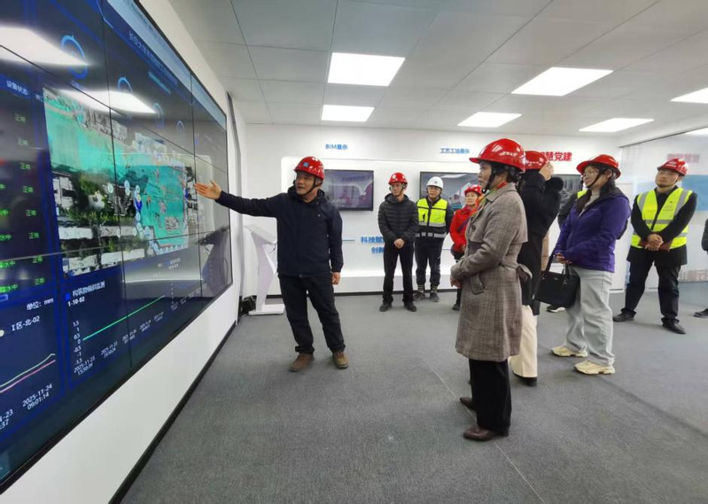 在项目管理方面,大力应用现代科技创新手段,提升工地智慧化管理水平,项目建成智慧工地管理平台,集成应用深基坑自动化监测、周边建筑物倾斜监测、水位监测及水泵自动启停系统等,实现对深基坑安全的智慧化管控,大大提升安全管理水平,同时,采用AI人脸识别管理系统及工地无死角监控管理系统,BIM项目管理技术,切实保障施工质量和施工安全。参会人员并对施工现场进了实地检查。