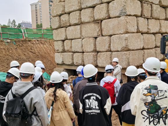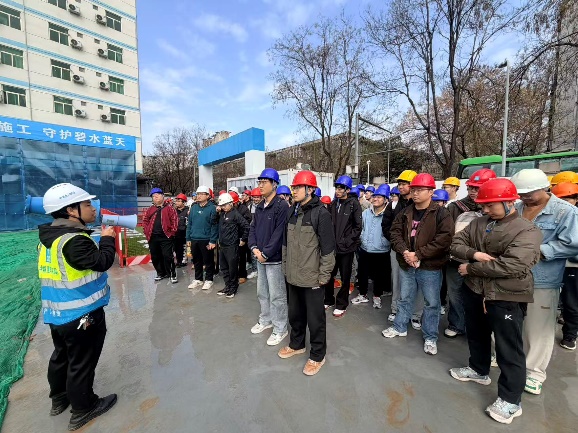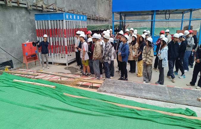 基建处高度重视此次实践教学,精心组织、周密安排,全程提供细致保障与专业讲解。实习采用“专题汇报+现场观摩”模式,围绕实习目标与内容,着力搭建理论联系实际的桥梁。在专题汇报环节,项目管理人员系统讲解了支护施工工艺、深基坑与基础工程等关键内容,涵盖施工准备、技术参数、质量管控、基坑开挖、支护降水、危大工程管理及智慧建造等重点环节。随后,师生走进施工现场,实地观摩智慧展厅、基坑支护、工程桩施工及静载试验等过程,深入了解一级基坑支护技术与现场管理流程。师生与项目管理人员围绕技术细节展开深入交流,现场学习氛围浓厚。
